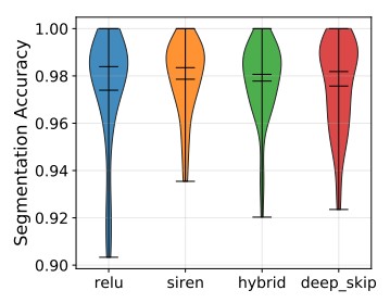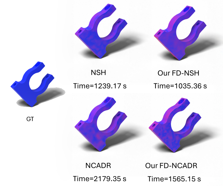 This method augments a neural SDF backbone with a lightweight segmentation head, enabling simultaneous shape reconstruction and part labeling. Unlike approaches tied to fixed taxonomies, the pipeline handles arbitrary part counts using PartField supervision. It delivers strong segmentation accuracy and label coherence, even on intricate geometries where reconstruction quality might degrade.