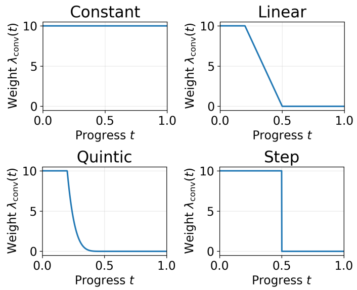A dynamic scheduling extension for the FlatCAD curvature loss. By decaying the regularization weight over the course of training, this method balances optimization stability with fine-scale detail recovery, achieving a 35% improvement in reconstruction fidelity compared to the fixed-weight baseline.